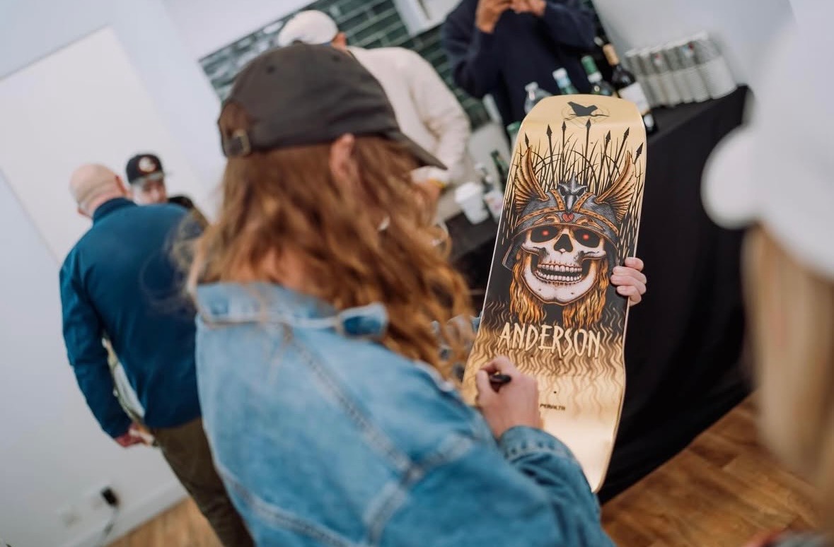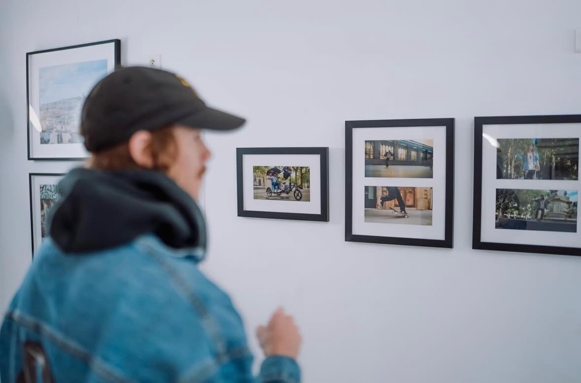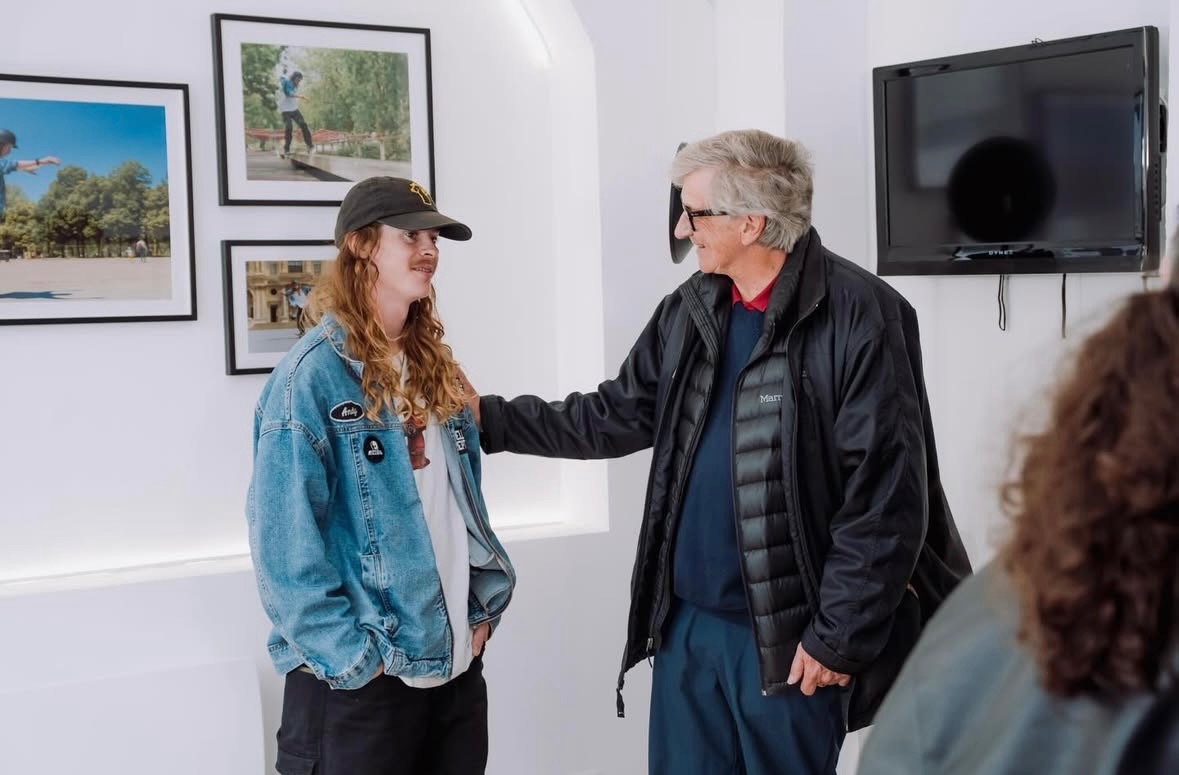 Pour accompagner la projection, une exposition a été installée dans l’espace. Sur les murs : des tirages photographiques du tournage. Dans la galerie : plusieurs planches de skateboard utilisées dans le film, ainsi que des prints des dessins réalisés par Andy Anderson lui-même. Ces éléments permettent d’entrer dans l’univers du projet et de prolonger l’expérience au-delà de l’écran.