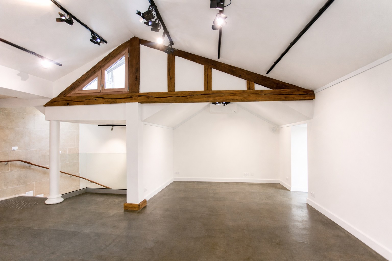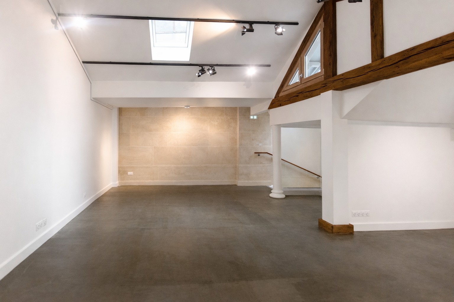 Réparti sur deux niveaux, l’espace propose une configuration fluide et chaleureuse, idéale pour des expositions, pop-up stores, présentations de collections ou lancements confidentiels.