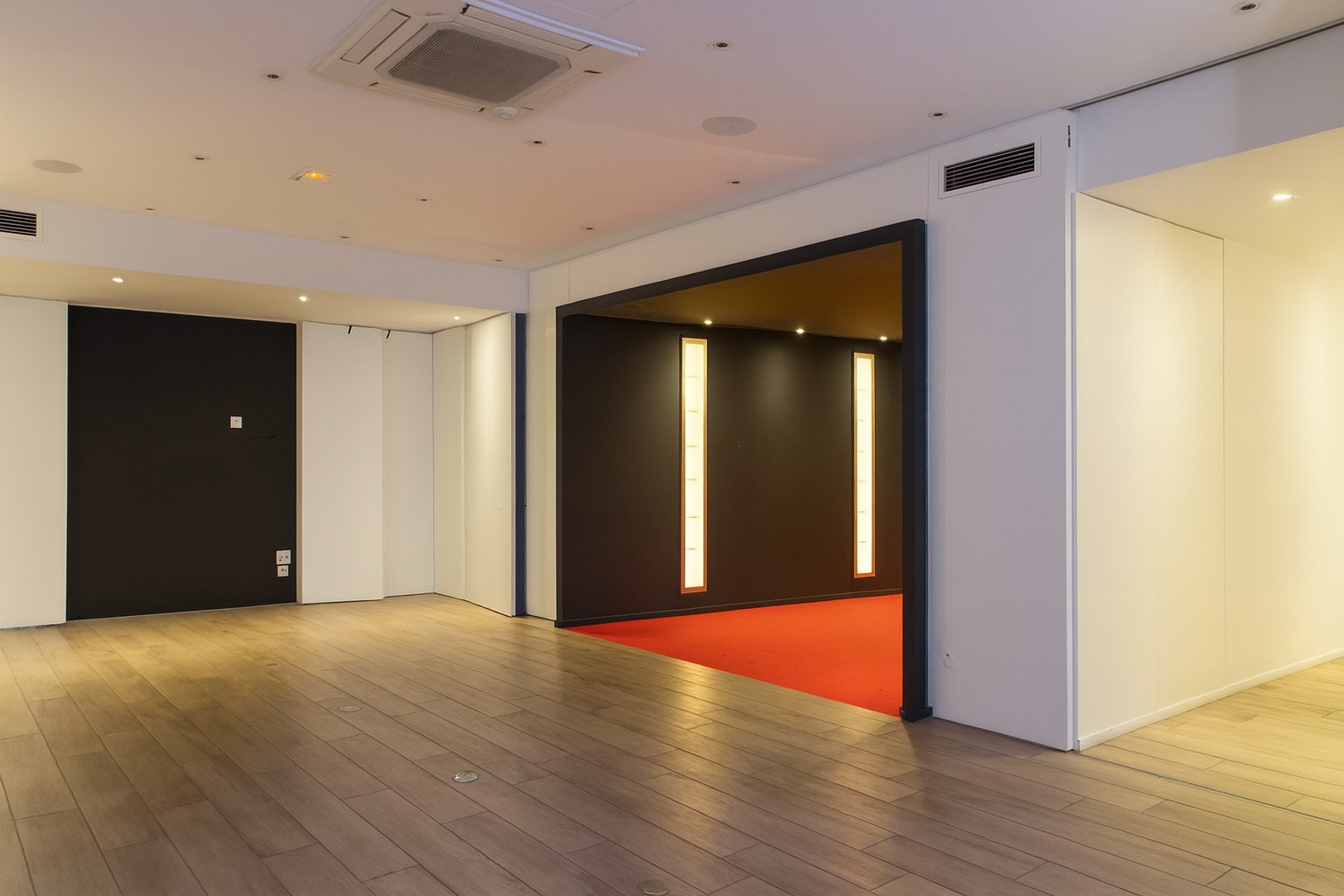Situé à proximité immédiate des Champs-Élysées, ce showroom propose un cadre contemporain à l’atmosphère soignée. Son entrée immersive — couloir sombre, éclairages verticaux et tapis rouge — crée une signature visuelle forte qui ouvre sur de grands espaces lumineux et modulables. Parfait pour des showrooms mode, beauté ou design, mais aussi pour des lancements, installations artistiques ou événements professionnels, le lieu offre une base élégante et facilement scénarisable pour sublimer tout type de projet.