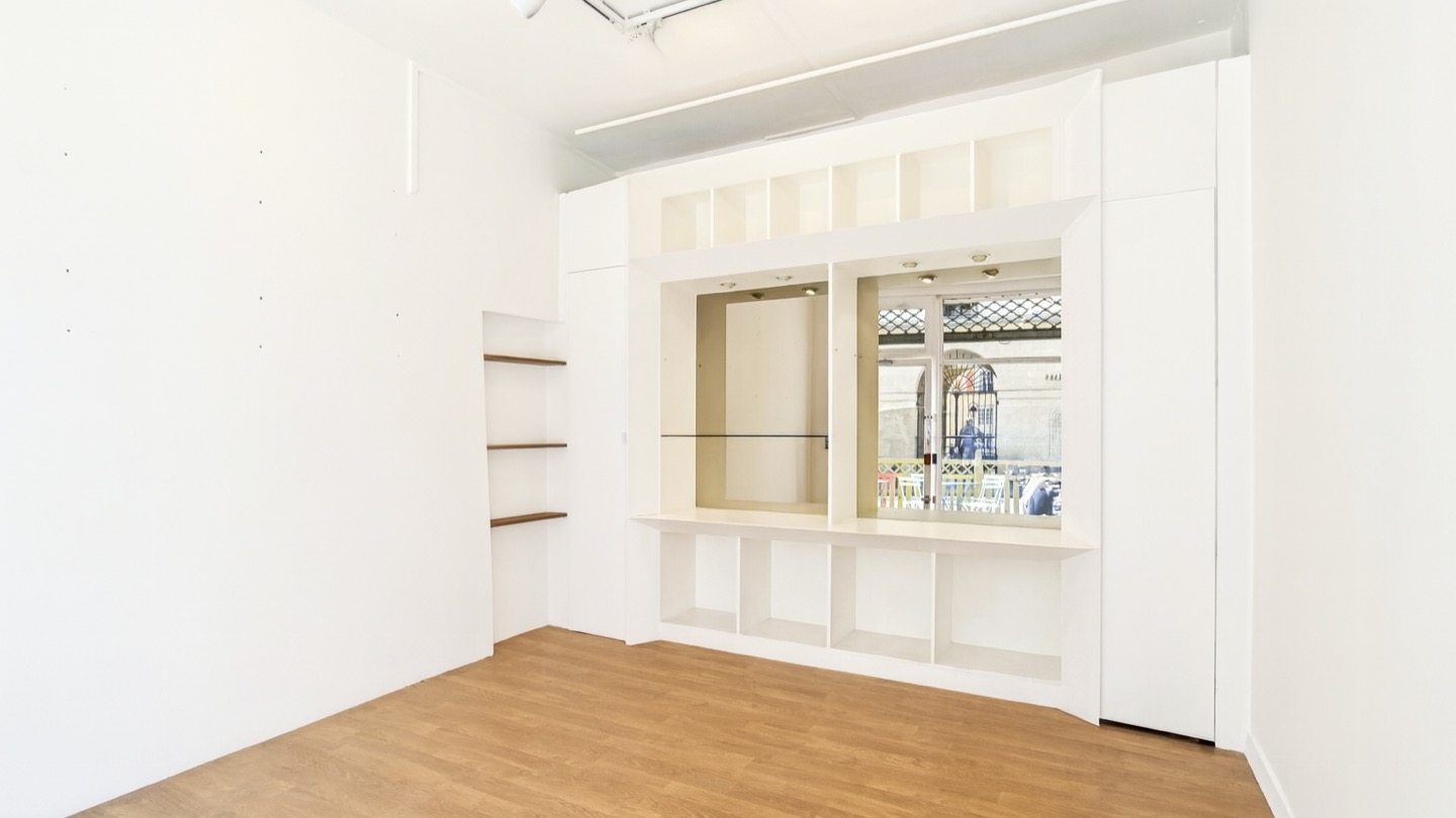 Située au bas de la rue de Turenne, à deux pas de la Place des Vosges, cette charmante boutique de 27 m² avec sous-sol de 13 m²